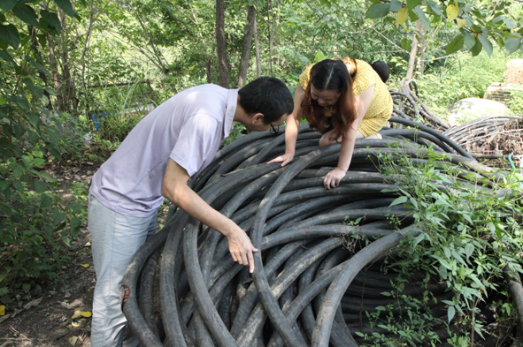 图为:该局审计人员现场查看施工电缆长度