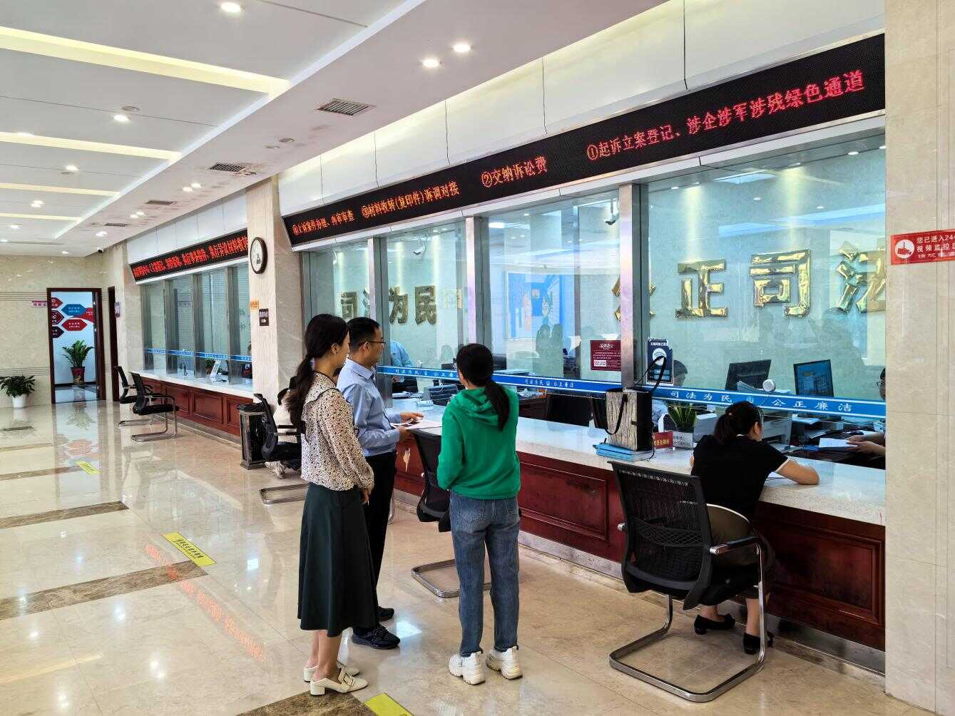 近日,黄石市审计局在阳新县人民法院领导干部经济责任审计中,重点关注了法治化营商环境情况。审计人员深入诉讼服务中心项目现场,实地察看诉讼费是否“一案一结”、涉企经济案卷办理是否超时限,扣押企业资产是否及时退还,助力人民法院审判职能有效发挥,推进法治化营商环境不断优化。图为审计人员走访诉讼服务中心大厅。