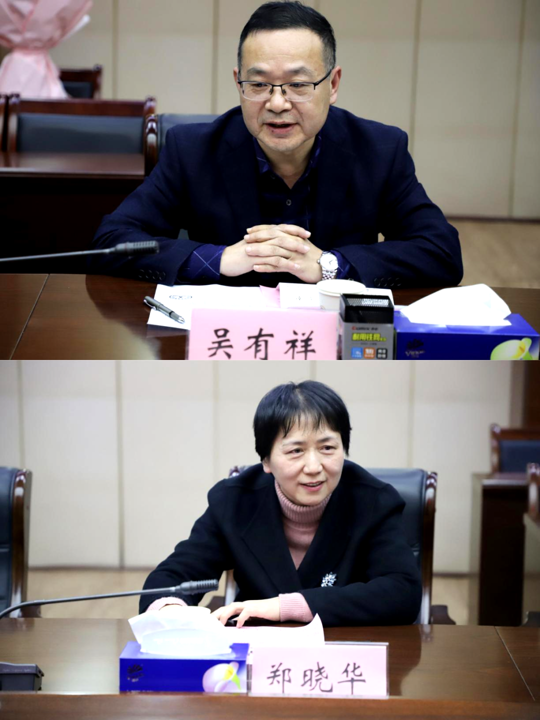 图为:退休干部吴有祥、郑晓华同志发表退休感言