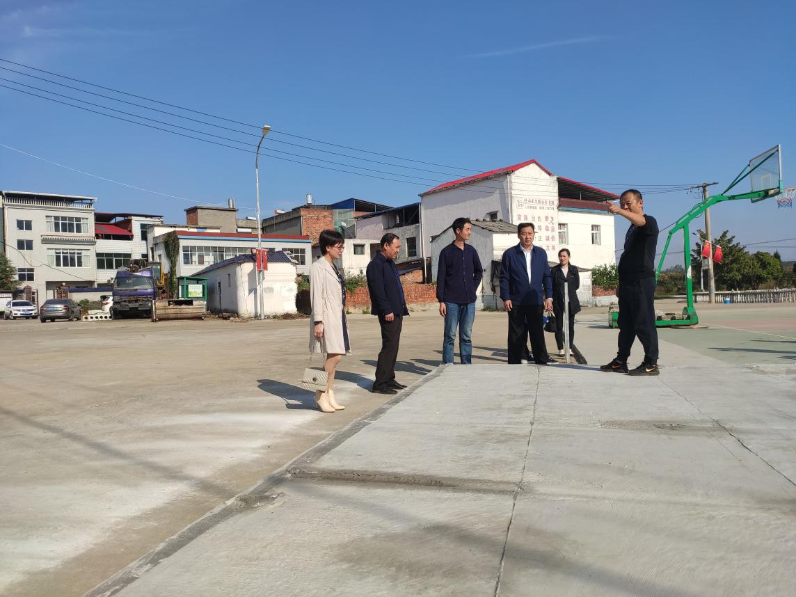 图为:夏明省一行查看村级文化长廊项目建设现场