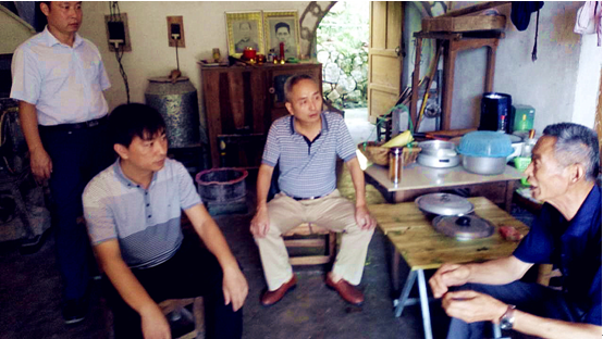 黄石港区审计局全体党员在区委常委、区委办主任柯春林率领下,8月份到阳新县龙港镇阳辛村精准扶贫,深入村民家中全面了解家庭状况,为精准扶贫一户一策谋思路、出主意,并分別给结对家庭送去慰向金,与群众心连心,受到百姓欢迎。