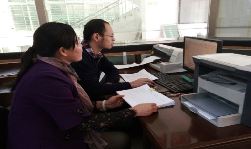 图为:审计人员在区财政局国库收付中心审查“三农”专项资金支付数据。