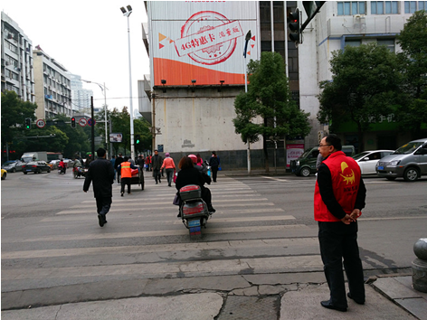 图为该局志愿者开展文明过马路劝导志愿服务活动现场