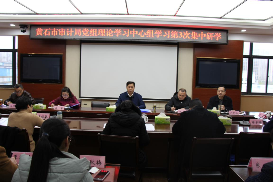 3月25日下午,黄石市审计局召开党组理论学习中心组(扩大)学习会议,传达学习习近平总书记重要讲话和全国两会精神,研究安排贯彻落实工作。局党组书记、局长夏明省主持会议,局班子成员、县级干部、各科室负责人参加。