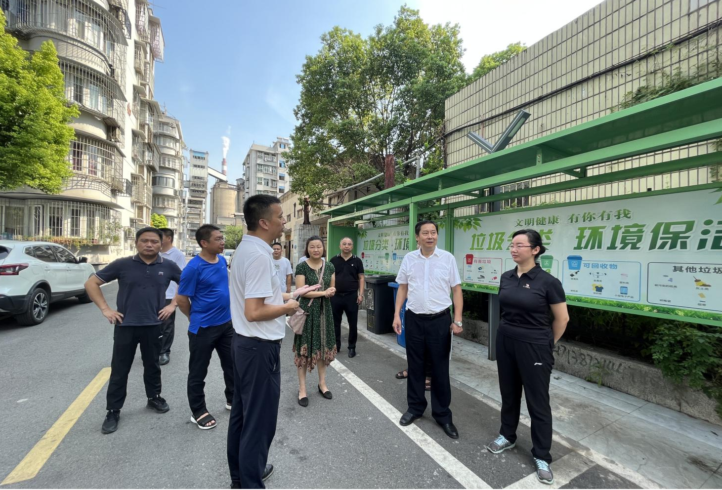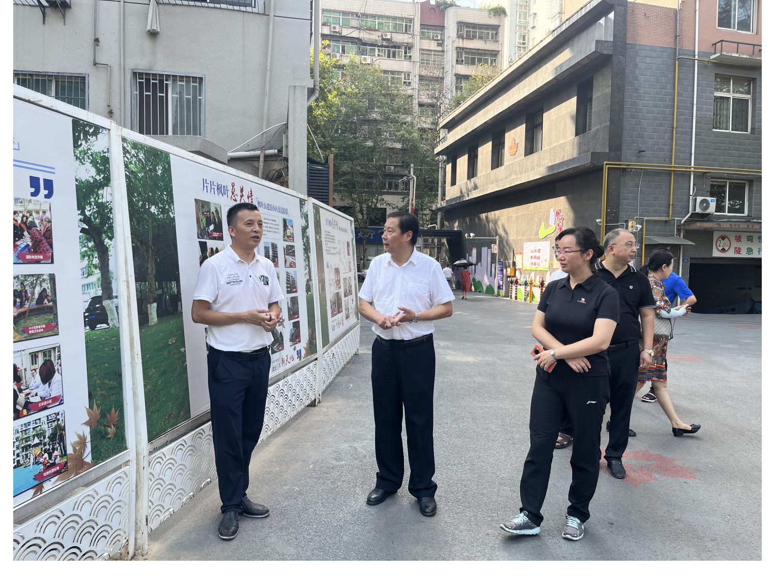 图为:夏明省一行察看枫叶山小区改造成果展