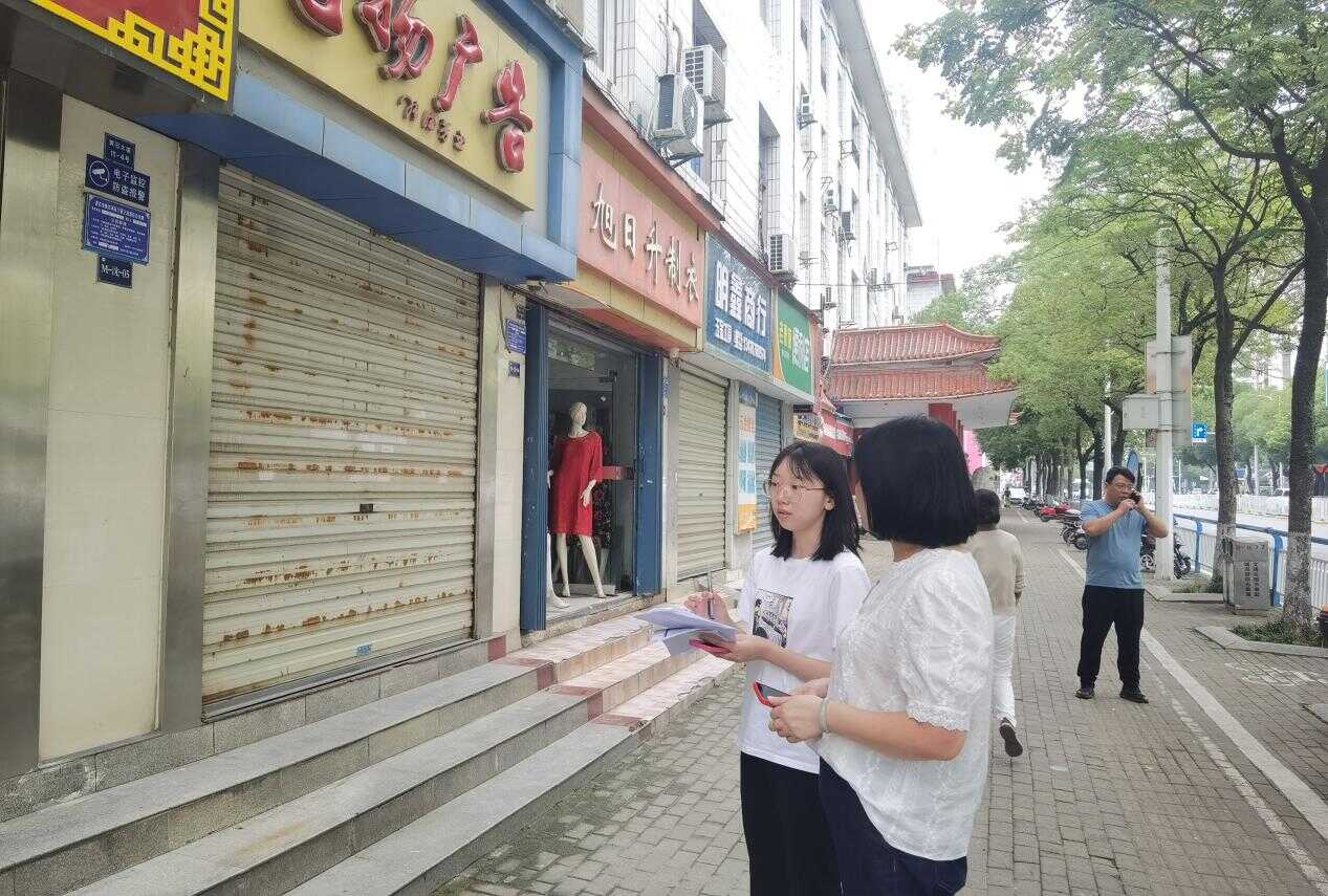 图为:审计人员实地查看门面出租情况现场