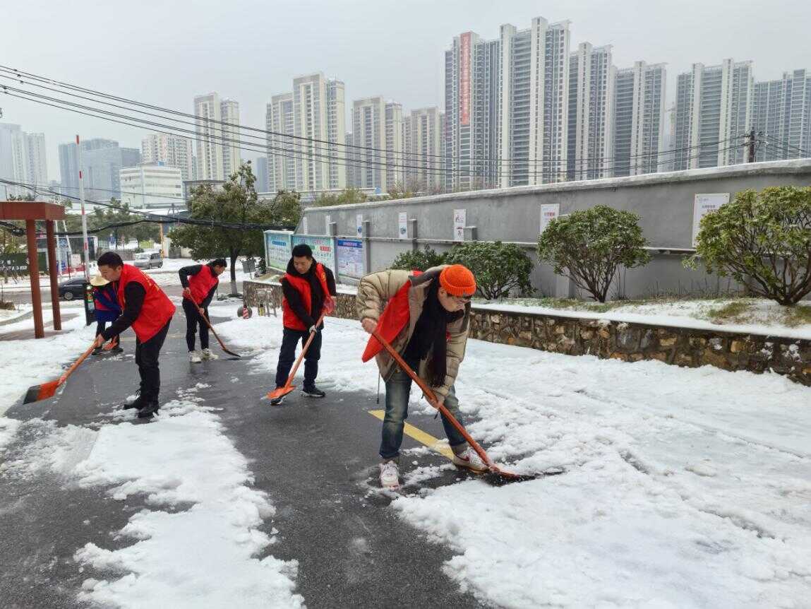 图为:黄石市审计局突击队下沉社区开展除冰扫雪行动