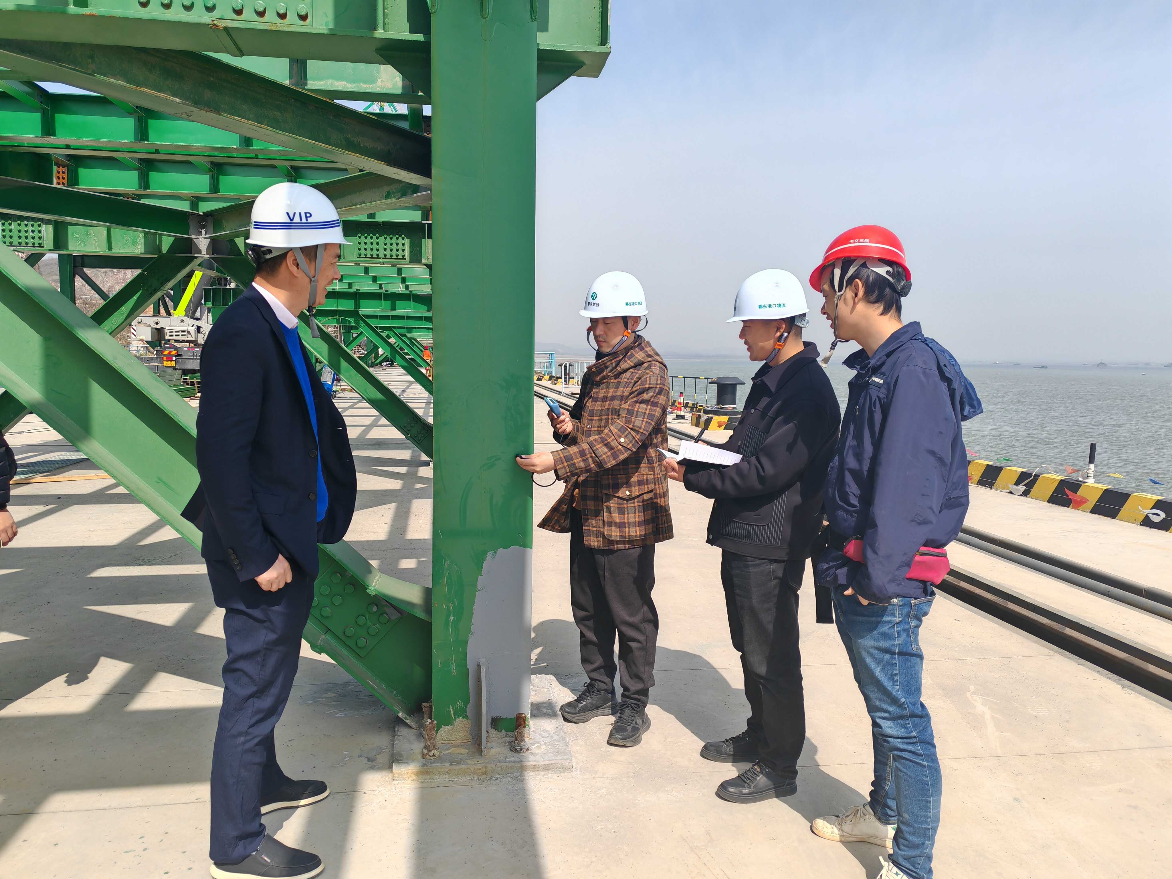 近日,黄石市审计局在开展砂石集并中心码头建设项目跟踪审计过程中,重点关注了码头廊道钢结构质量情况,审计人员运用涂层测厚仪对码头钢结构廊道进行现场勘察,检测防火涂层、油漆涂层、防腐涂层是否符合设计及规范要求,工程施工质量是否满足验收标准等,进一步确保工程质量,为长江沿线码头建设管理工作添砖加瓦。图为审计人员现场运用涂层测厚仪测量钢结构涂层厚度。