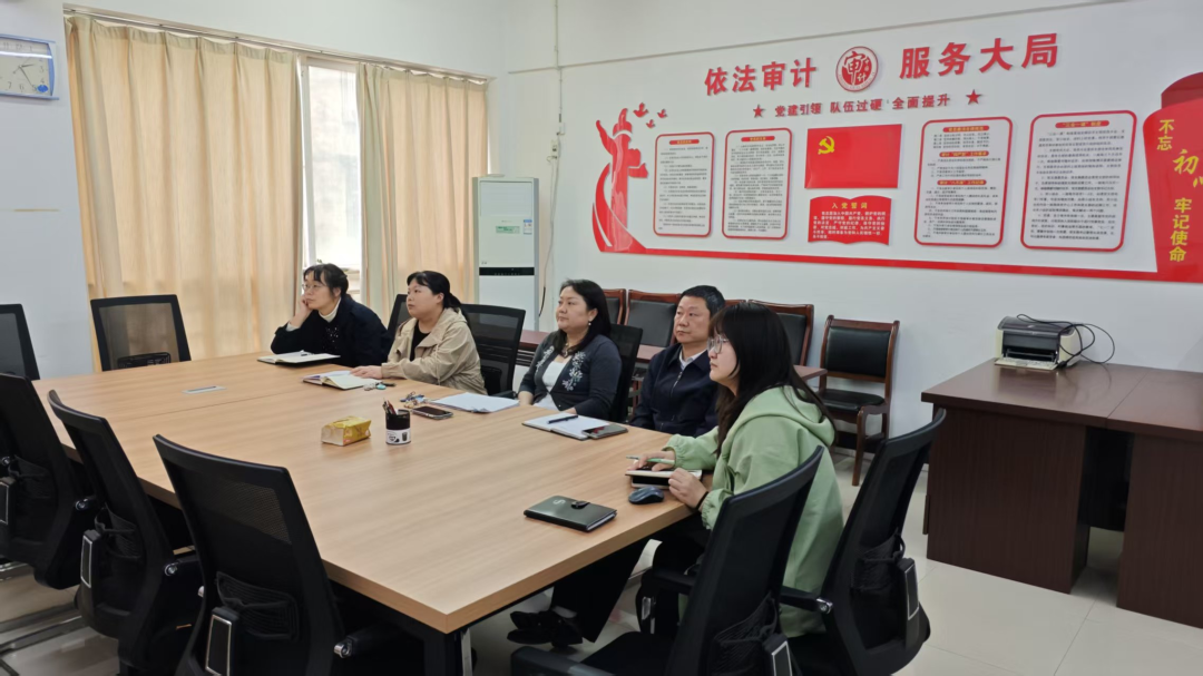 图为:西塞山区审计局组织干部职工集中观看国家安全专题教育视频
