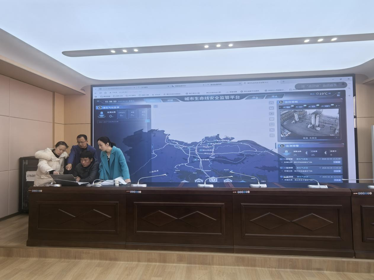 近日,黄石市审计局在市城管委领导干部经济责任审计中,重点关注城市基础设施安全运行监测系统项目建设及管理情况。审计人员通过查阅资料、现场观摩系统运行、实地踏勘核查等方式,紧盯项目招投标、资金使用管理、项目绩效等关键环节,重点核实人工智能、物联感知等技术应用实效及资金管理使用绩效,以审计监督助力城市燃气、桥隧、供水、排水防涝等基础设施管理向智能化、精细化转型,筑牢智慧城市安全运行防线。图为审计人员现场查看城市基础设施安全运行监测平台。