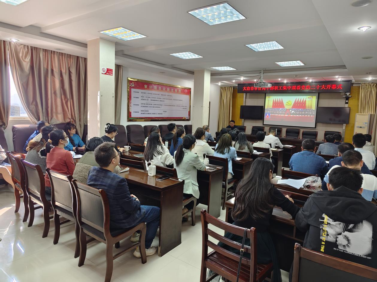 图为:大冶市审计局全体干部职工认真聆听党的二十大报告