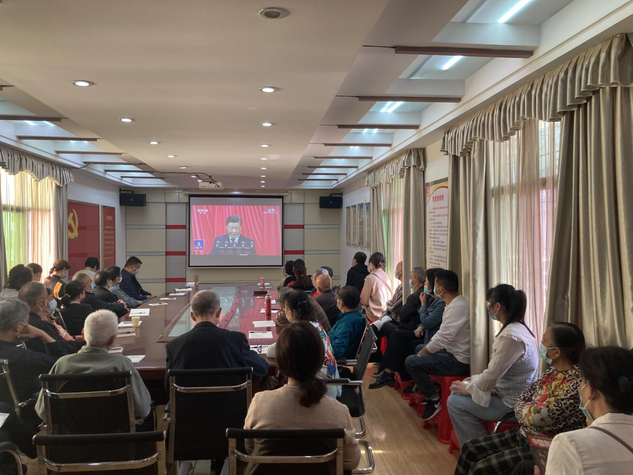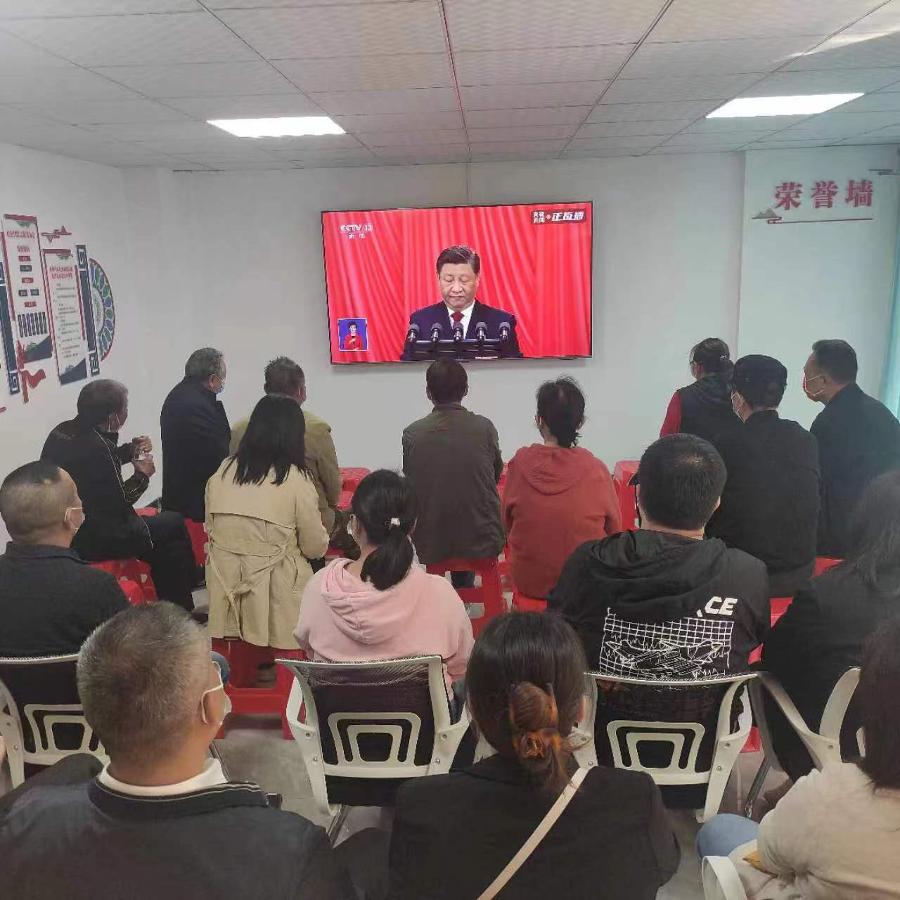 图为:黄石市下陆区审计局全体干部职工到挂点社区与社区两委、党员代表一同认真聆听党的二十大报告