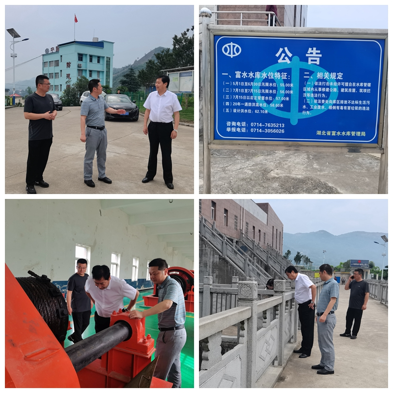 夏明省实地查看了富水水库防汛楼防汛备汛、泄洪机房安全运行等工作开展情况、并详细询问了解富水水库库容和泄洪有关情况。