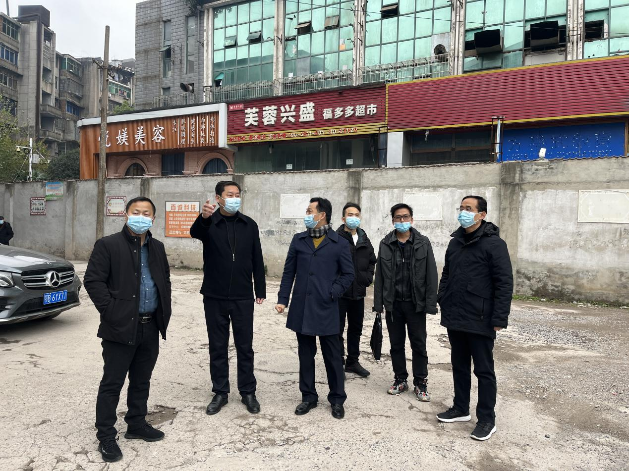 图为:夏明省一行调研黄石市交通路步行街项目建设情况