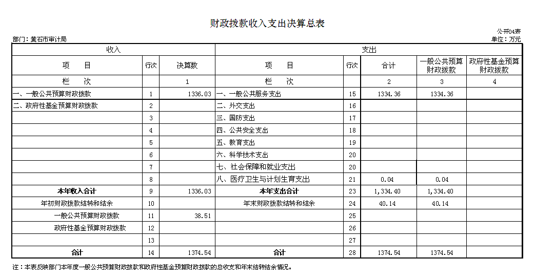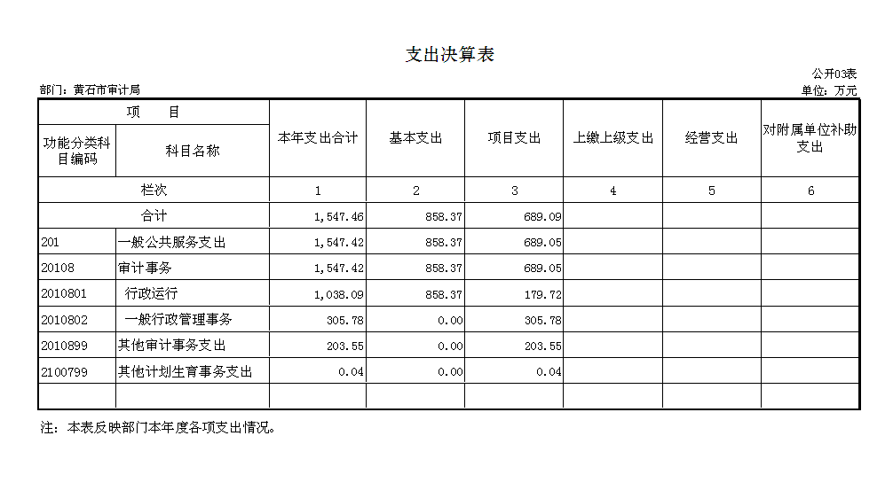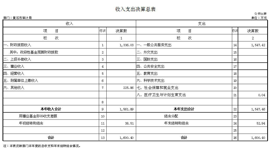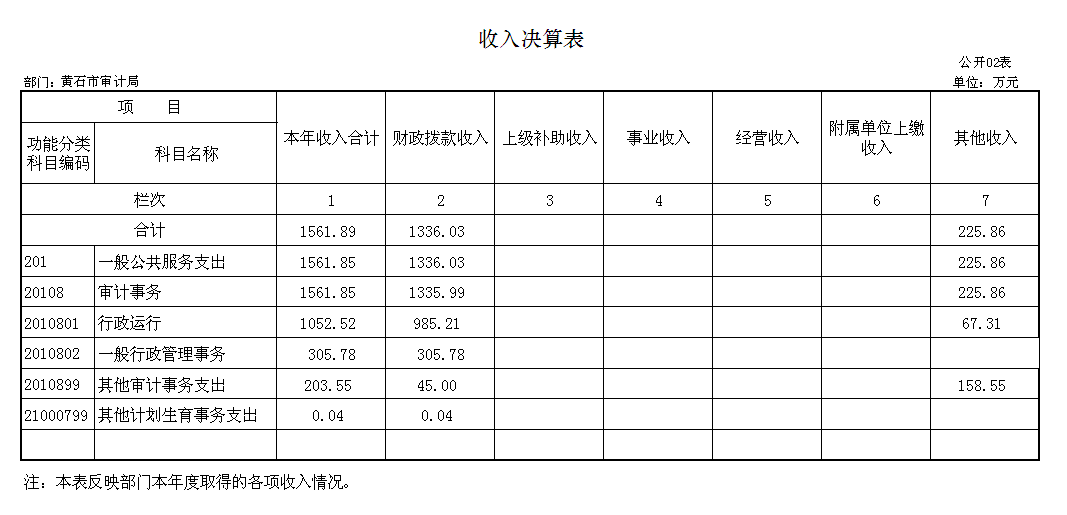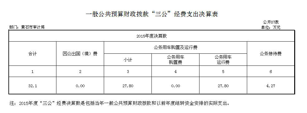 八、黄石市审计局2015年度部门决算表