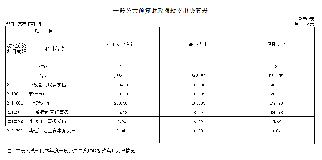 根据《市财政局关于批复2105年度市直部门决算的通知》的规定,2015年收入合计1561.89万元。其中:财政拨入经费1336.03万元,其他收入225.86万元。2015年支出总计1547.46万元。其中:行政运行支出1038.09万元,主要用于保障单位正常运转、开展审计业务、审计管理、审计信息化建设、机关离退休人员及在职人员等人员经费。一般行政管理事务支出305.78万元,主要用于全市开展审计业务、审计管理、审计信息化建设、经济责任审计项目、政府投资审计项目等支出。其他审计事务支出203.55万元,主要用于全市开展经济责任审计项目、政府投资审计项目审计服务费用等支出。计划生育事务支出0.04万元,主要用于职工计划生育独生子女保健事务支出。